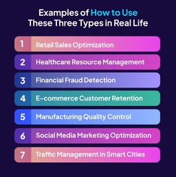 Now let’s explore seven real-life examples of how to use descriptive, predictive, and prescriptive analytics: